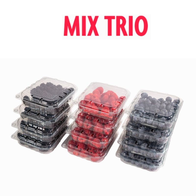 Con el Mix Trio disfrutas arándano, frambuesa y zarzamora frescas de la mejor calidad.